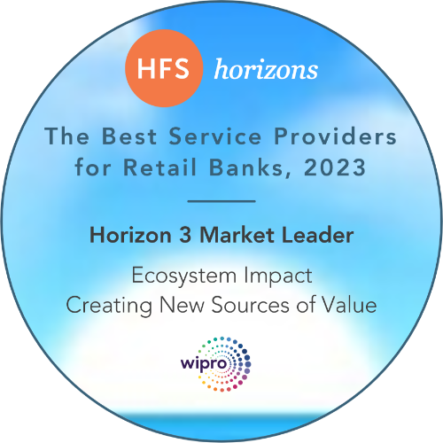 Global business research consultancy HFS named Wipro a Market Leader in its 2023 Horizons report on Best Service Providers for Retail Banks. In a field of 21 competitors, we are one of only six service providers named to the top tier. As a Horizon 3 Market Leader we demonstrated strong partnerships with clients to execute and scale capabilities to generate new sources of value.