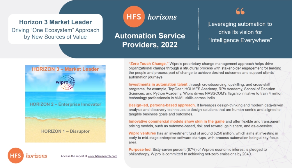 Wipro Named a Market Leader in HFS Horizons Automation Service Providers 2022 Report