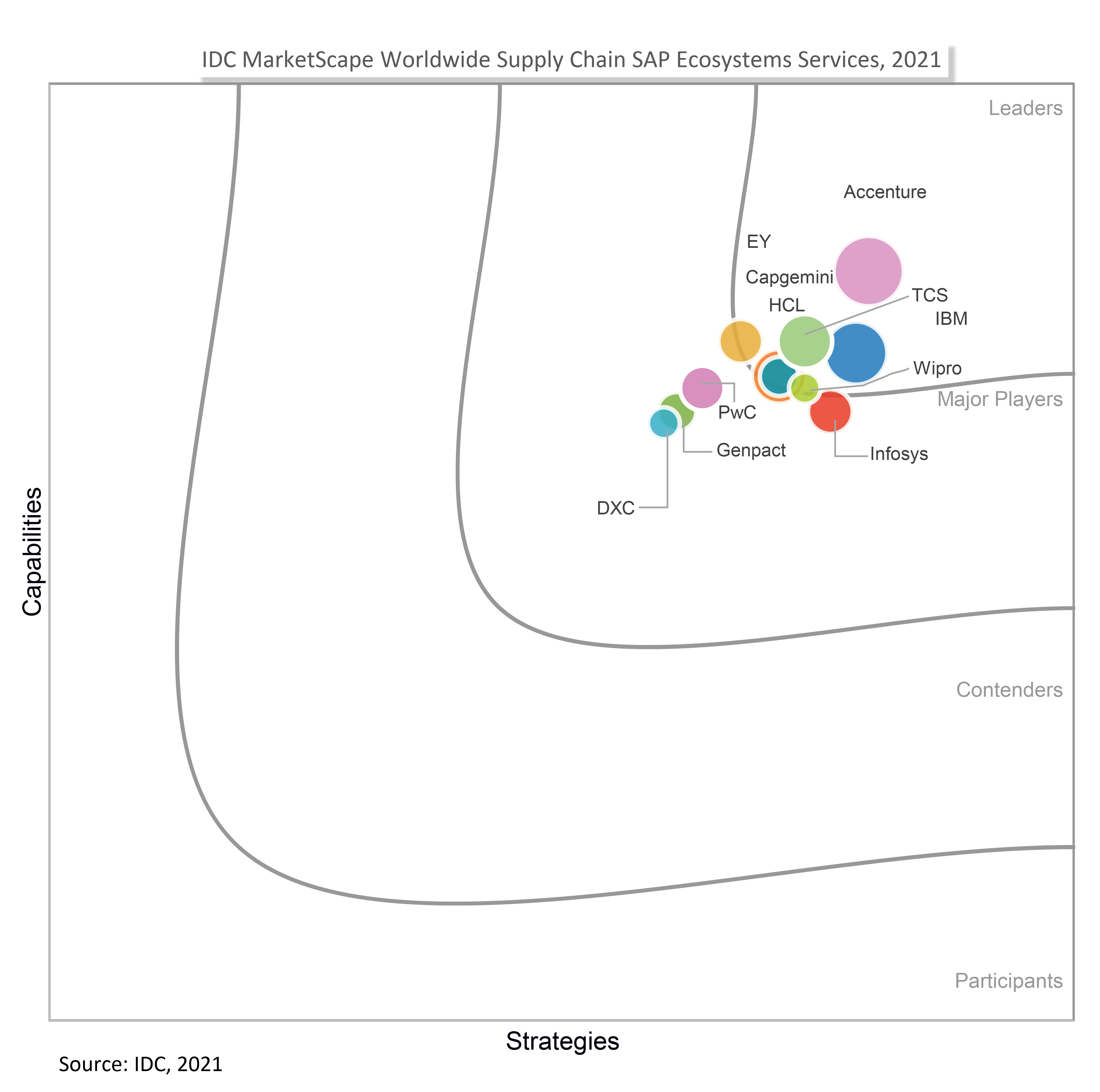 The 2021 IDC MarketScape report covering worldwide supply chain SAP ecosystems services looks at 11 IT services firms that support the assessment, selection, and implementation of the SAP suite of supply chain management tools. The IDC MarketScape research is both a quantitative and qualitative assessment of the characteristics and capabilities that affect a vendor's success in delivering supply chain transformations for manufacturers and retailers. For the purposes of this analysis, the IDC MarketScape divided potential key measures for success into two primary categories: capabilities and strategies. Based on their analysis, Wipro is named as a Leader.