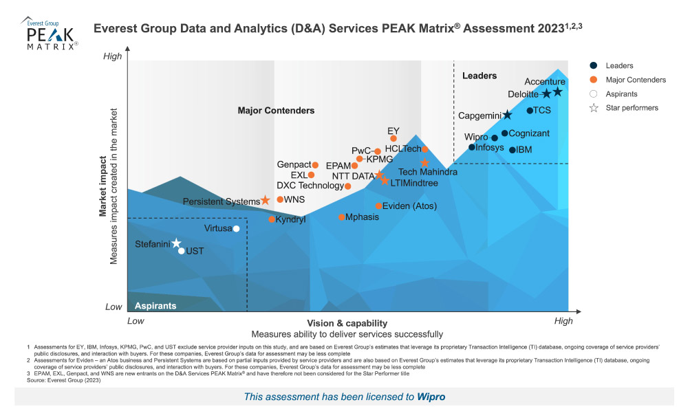 “Wipro’s technical capabilities and expertise is well known in the market. From a D&A standpoint, it has built a comprehensive suite of offerings and has an extensive technology partnership ecosystem enabling it to deliver tailored services to its client. Wipro has also made significant investments to further strengthen its platform-based assets for D&A that can provide significant benefits to its enterprise clients. This has all helped Wipro emerge as a Leader in Everest Group’s D&A Services PEAK Matrix® Assessment 2023.” said Vishal Gupta, Vice President, Everest Group.