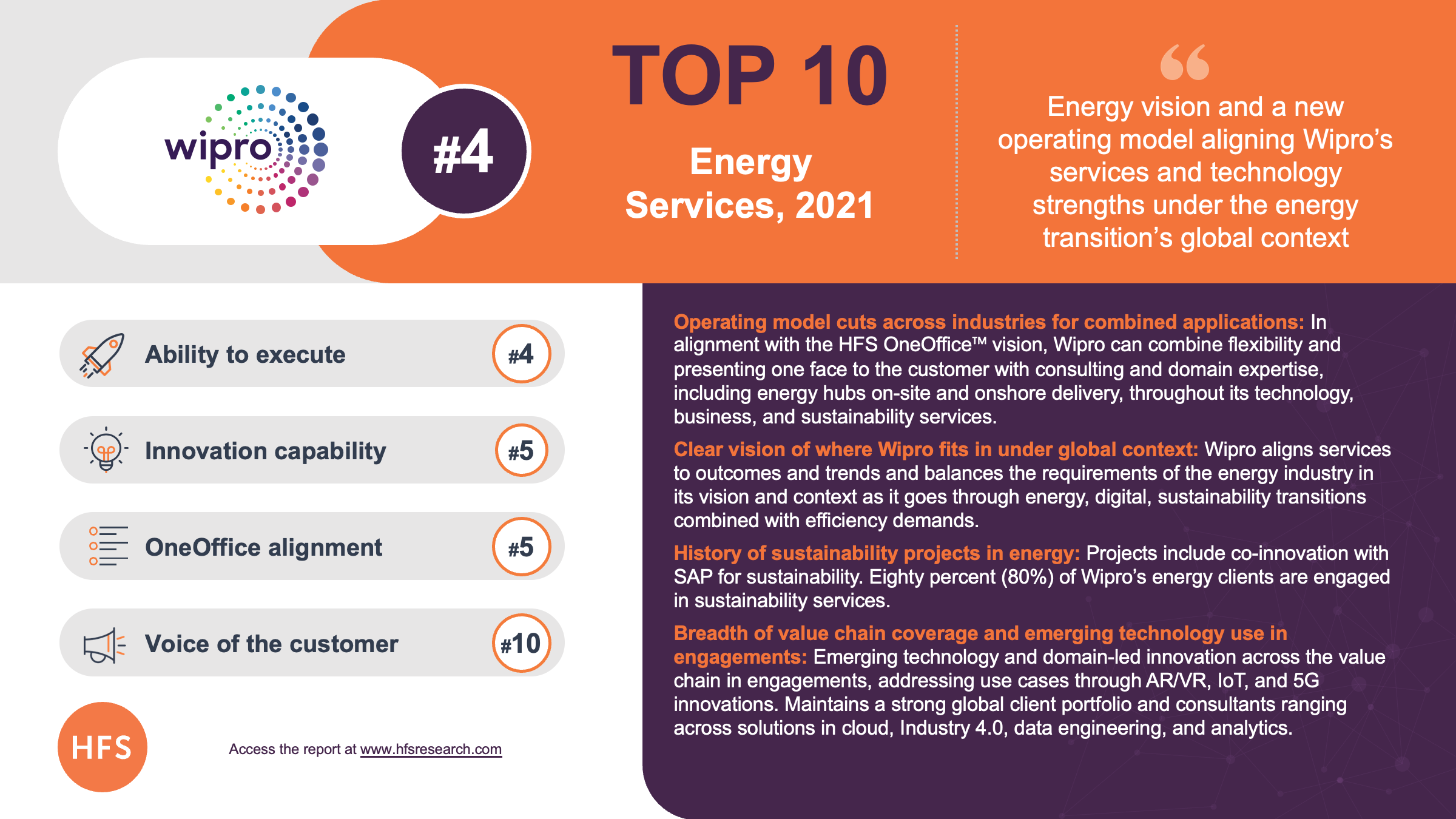 Wipro’s key strengths as called out by HFS:
