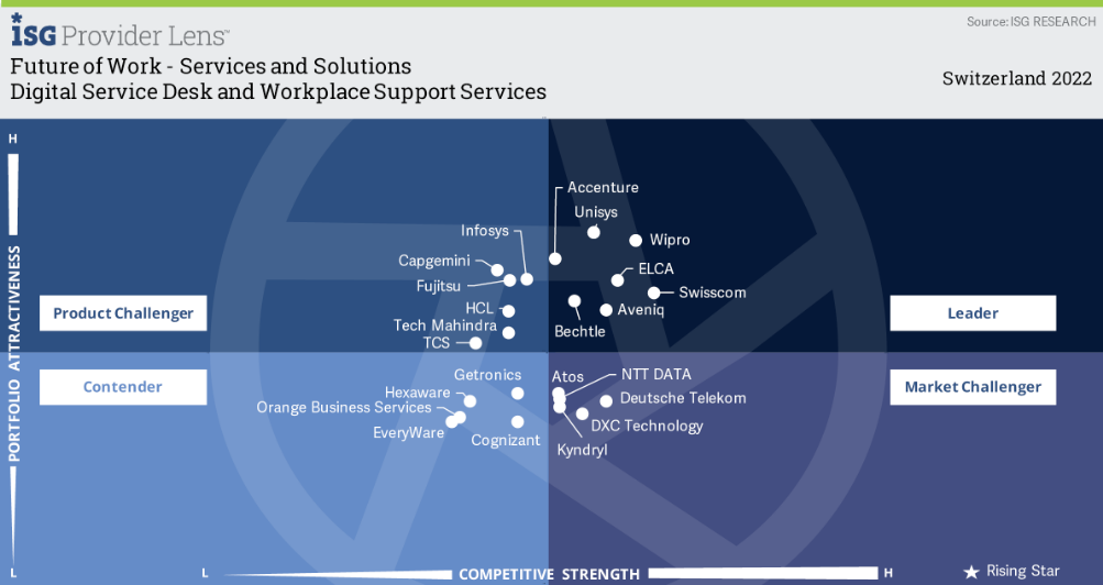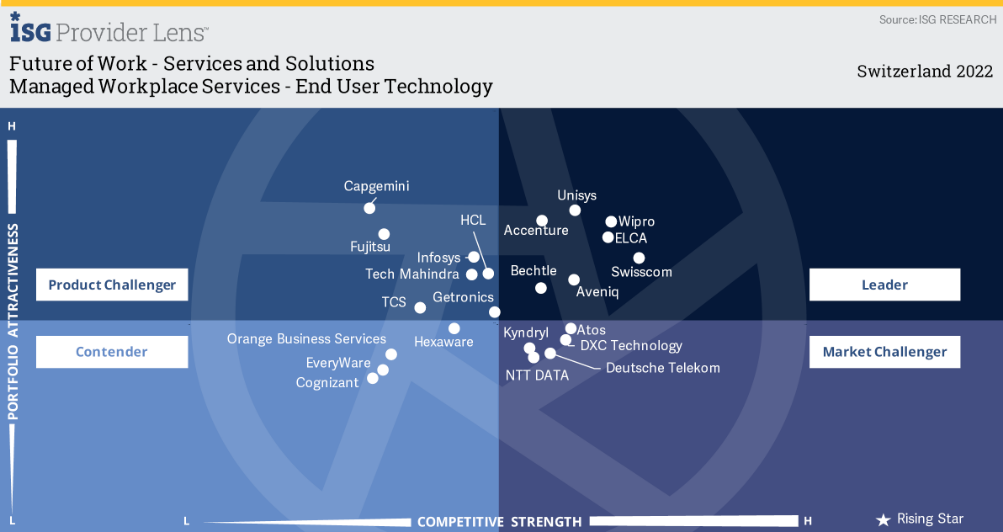 Wipro is positioned as a ‘Leader’ in ISG Provider Lens™ 2022 for Future of Work Services and Solutions with a focus on Digital Service Desk and Workplace Support Services and Managed Workplace for the Switzerland market.