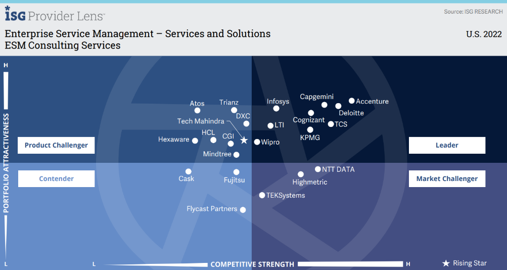 Wipro Recognized as a ‘Leader’ in ISG Provider Lens™ for Enterprise Service Management – Services & Solutions 2022–U.S. across all three quadrants