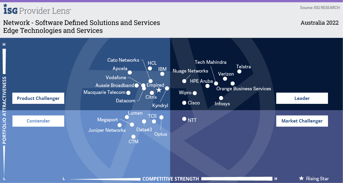 Wipro is positioned as a ‘Leader’ in ISG Provider Lens™ for Network - Software Defined Solutions and Services 2022 in all the segments for the Australia market.