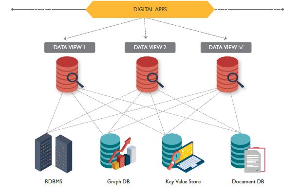 In the past, enterprise data for all the applications it neatly into relational tables. Digital apps are built using new set of data management technologies decided upon the factors such as availability, requirements and ease/rapidness of development i.e. NOSQL database such as Aero Spike, MongoDB, Cassandra, etc. Digital Applications - Age of Polyglot Storage on a multi-model storage engine like Foundation DB, Arango DB. A hypothetical digital app may store its application data in more than one database like customer information on a relational DB, catalogue information on document database, click-stream and mobile session information data in Cassandra, etc.
