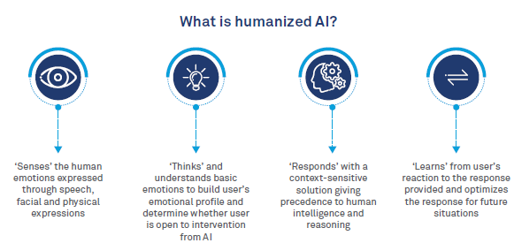 Anything that affects humans, as opposed to just other machines, requires a humanized approach. AI is no different. Humanized AI is that which understands human emotions like happiness, stress, urgency, anger and pain when humans display them through speech, facial and physical expressions, and has considerable empathy to respond to the end user in a human-like or natural manner. This is different from traditional Behavioral Analytics. Humanized AI not only derives insight from the user data but also responds to the user in a manner and language best suited to his/her emotional profile. True Humanized AI, for instance, is able to understand the criticality of the tasks scheduled in your calendar and prioritize them based on importance and urgency. It responds to you in natural language very much like a human friend.