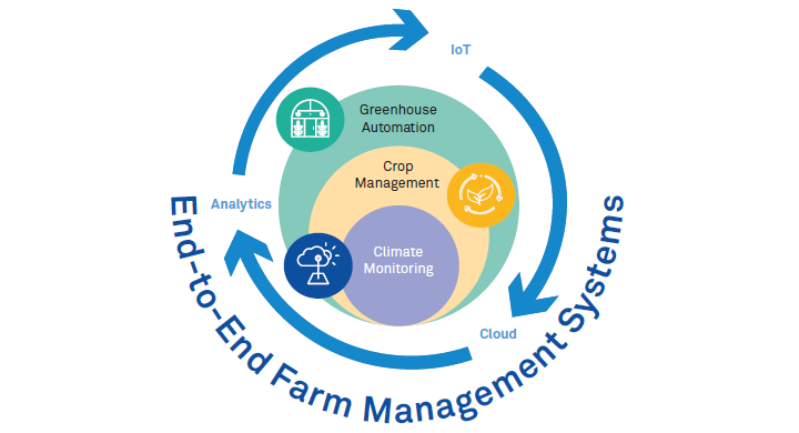 A highly effective Smart Farm Operating Model is illustrated in Figure 7. The day-to-day monitoring and control of crop and environmental parameters affecting the crop, plus the regular data-driven crop planning is classified into the core SmartFarm operations, while other ancillary activities associated with the farm such as marketing, inbound/outbound logistics, and crop finance and insurance are bucketed into ‘other Smart Farm operations’. Together, these two buckets constitute what we perceive as a Smart Farm ecosystem.