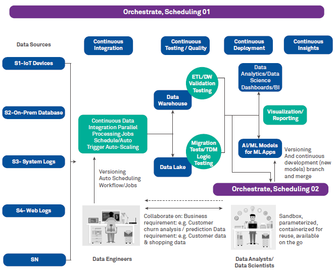 Manual processes in the data pipeline from integration to testing and analytics are overbearing and time consuming. Some teams work long hours to make sense out of the data analytics efforts, some commit less and take more time to be watchful in their approach, while others try to be quick by compromising on parameters. So, overcoming the data-related challenges requires not just tools but also changes in the underlying processes that handle analytics.