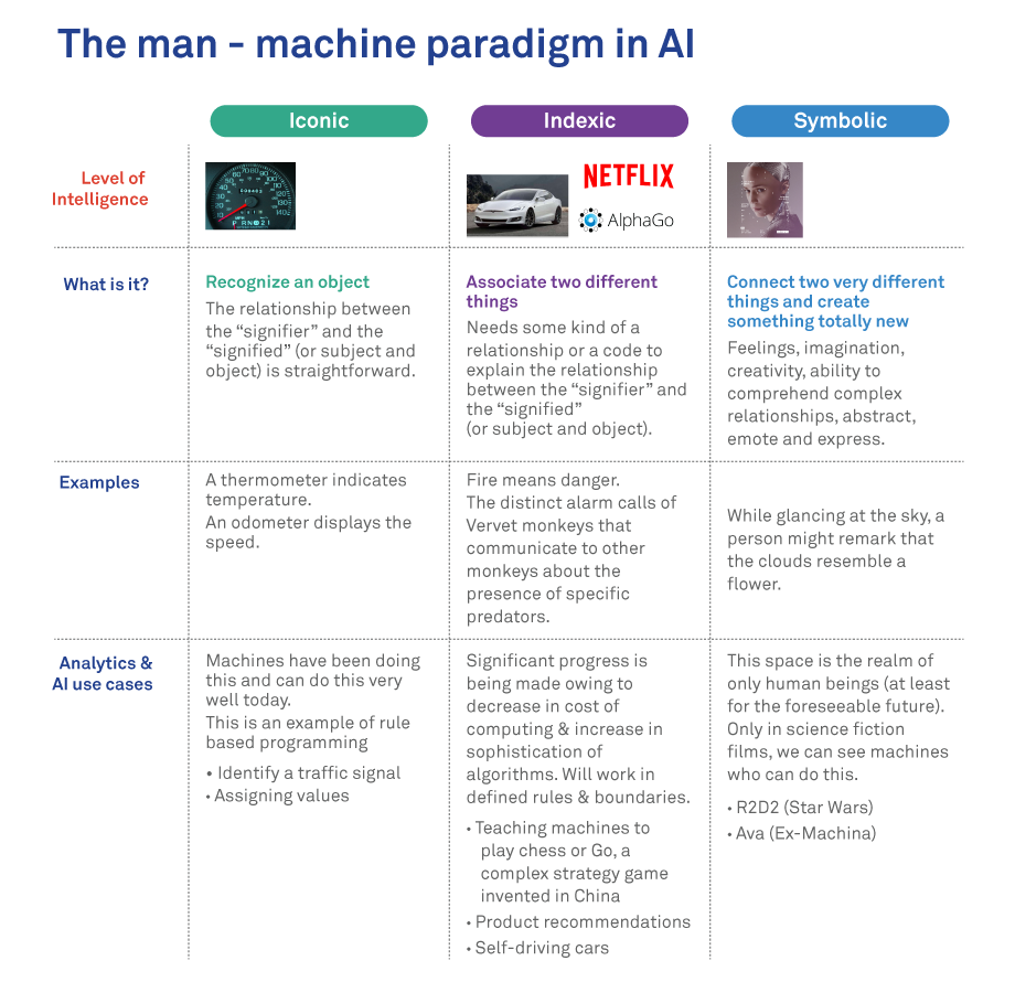 By combining the machine’s superior “Indexic” skills with a human’s “Symbolic” skills, organizations could create significant value. This is the “Man-Machine” paradigm.