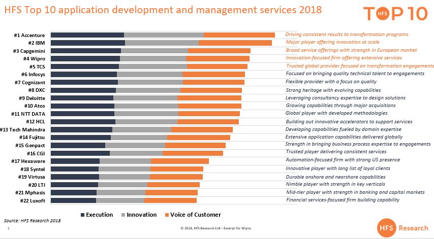 Wipro ranked #4 in HfS TOP 10 Application Development and Management Services 2018