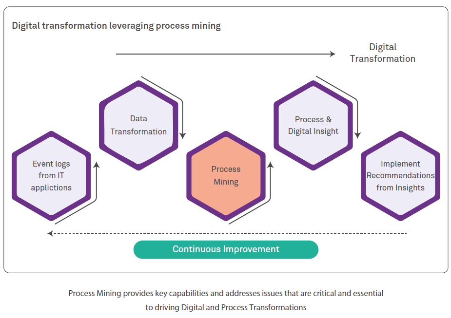 Process Monitoring and Digital Transformation are critical to organizations to help drive competitiveness and achieve market differentiation. Process mining as a capability is fast emerging as a powerful and critical tool in enabling digital transformation. Traditional methods of process discovery and transformation are far too time-consuming, inefficient and inaccurate to support digital transformations where speed is the key. Process mining as a technology is rapidly evolving with vendors adding new capabilities to support digital transformations. The market is rapidly assimilating these developments with ERP and application vendors integrating process-mining capabilities into their systems, underscoring the growing recognition and importance of process mining for organizations.