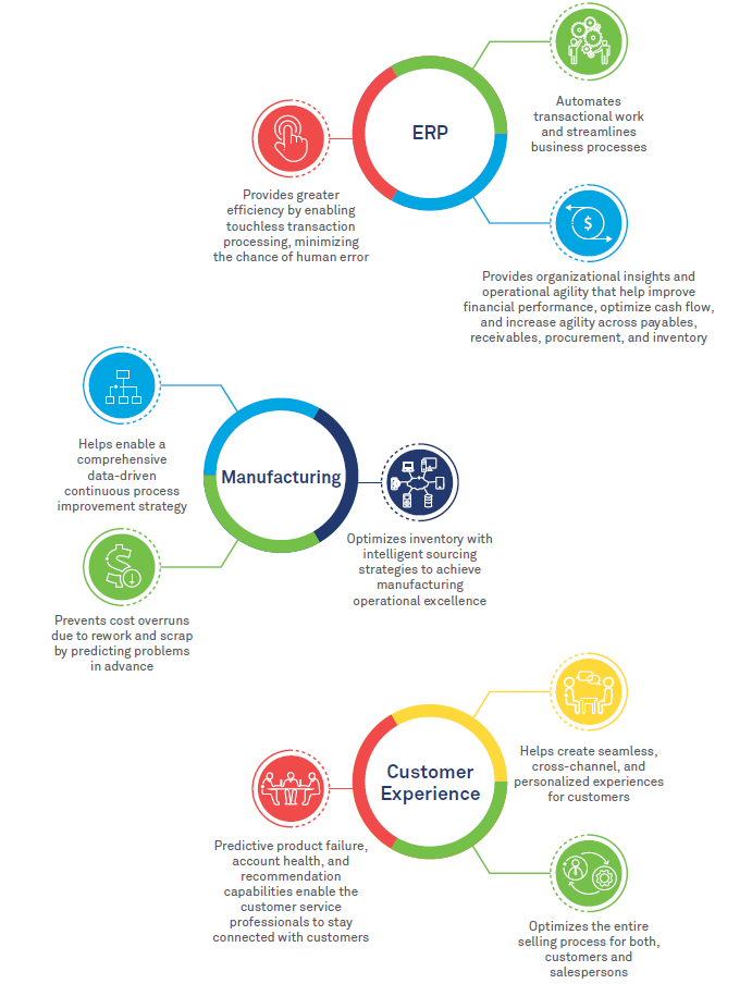 Some of the clear advantages of deploying adaptive intelligent applications on top of ERP, manufacturing and customer experience systems include: