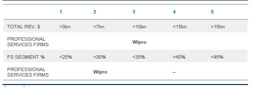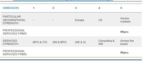 An earlier section of this report introduced six dimensions to differentiate the professional services providers. Again, the numbers are simply an index; they are not a ranking or score. Wipro summary is highlighted in Bold in Table 8 and Figure 5.