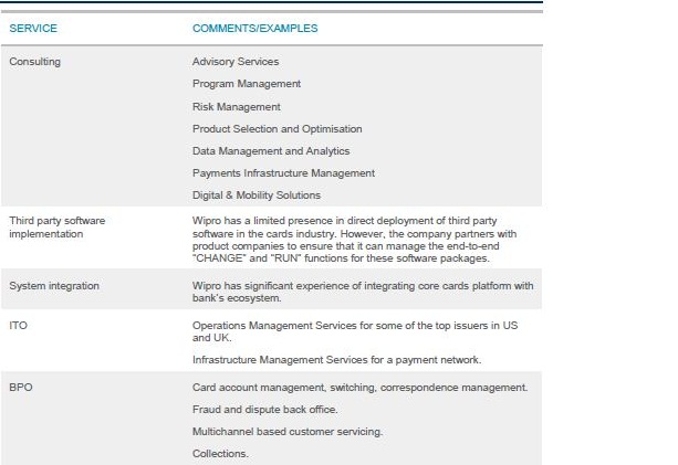Table 6: Wipro Professional Services in Cards and Payments