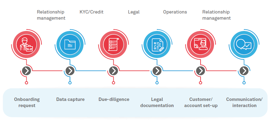 A typical customer onboarding process involves multiple activities. It starts with evaluating the customer’s requirement, followed by due-diligence, completion of legal aspects, account opening1 and making it operational (as shown in Figure 1).