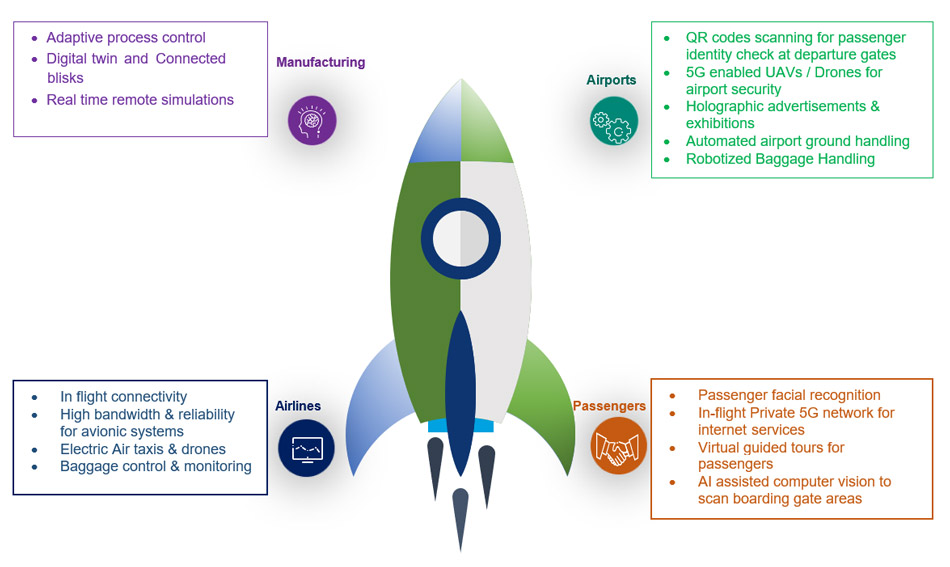 If leveraged properly, 5G deployments will touch every facet of the aviation lifecycle. At a high level, 5G will transform the industry in four primary areas: manufacturing, airports, airlines, and the passenger experience.
