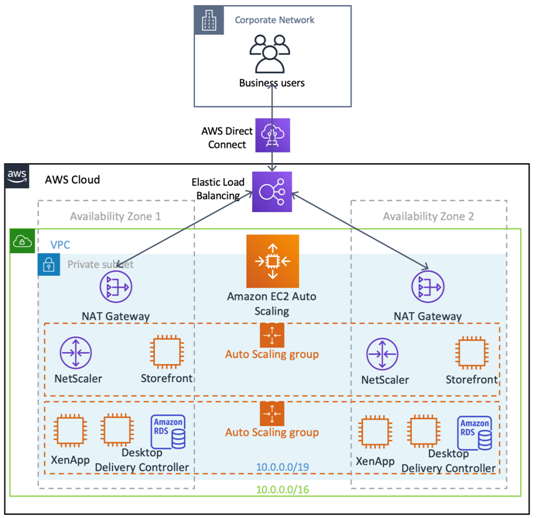 AWS provides robust scaling capabilities and quick turnaround for setting up the virtual desktop infrastructure and delivering the DaaS solutions to the business users for a fast and flawless experience. Figure 1 shows a general architecture representation for Wipro’s DaaS on AWS.