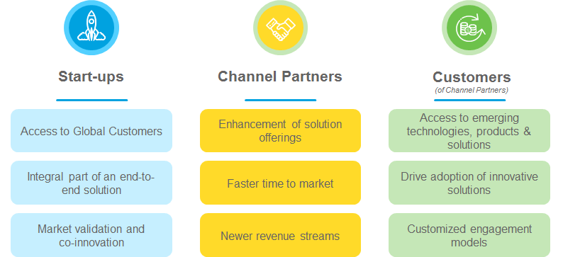 Finally, start-ups choose to partner with large service providers because they can benefit from the technical expertise of the service providers’ practice teams. The process enables them to get the required validation on their products and its suitability for enterprise environments. They can also leverage their partners’ innovation teams for internal evangelization, relevant introductions and marketing activities.