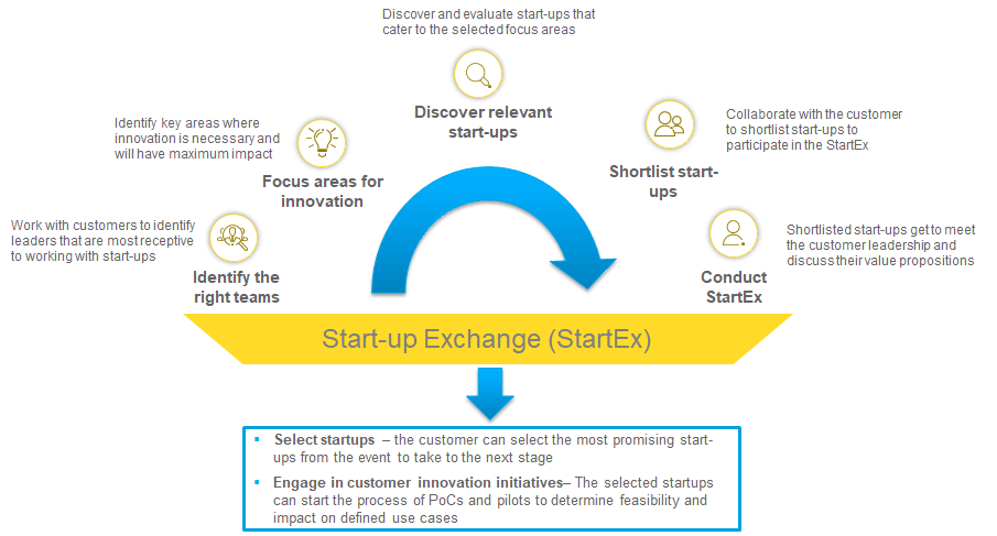Secondly, start-ups expect more face time with customers than channel partners are sometimes able to offer, as it is often the quickest and most impactful way to demonstrate their value. No one else can articulate a start-up's value proposition better than a founder. Indeed, approaching this process in a sequential manner in which the service provider first sources requirements from its customers and subsequently involves start-ups if they can help address these requirements, exposes the service provider to information loss and misunderstandings and slows down the entire process. The limited exposure creates ambiguity on the start-up side as they are not able to understand the real needs or intent of the customer with respect to the bigger picture.