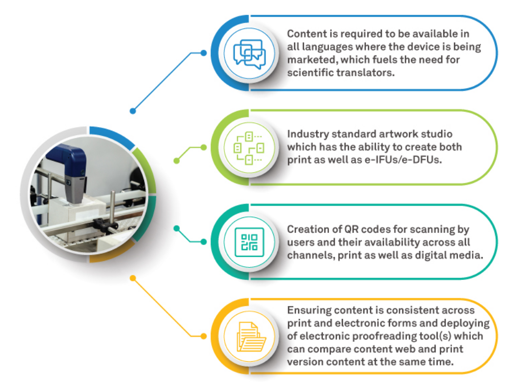 E-labeling is gaining favor with the regulatory bodies and emphasizing on publishing electronic content. All Instructions for Use (IFUs) and Direction for Use (DFUs) are required to be available in electronic forms and all device manufactures must comply with the regulations. All major companies have already started working towards this requirement.