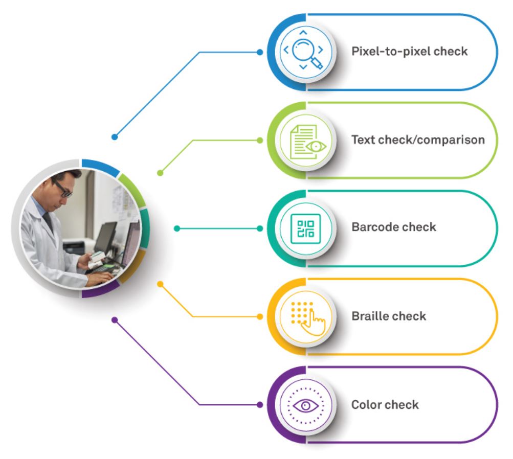 Once the artwork operator completes the creation of the artwork, the next process step is to do proofreading/QC of artwork created. This should be end-to-end proofreading of packaging artwork and labeling documents with the help of industry standard electronic proofreading tools for technical and text checks which may involve manual proofreading in some cases for elaborate quality check of artwork created. Activities that are required to be performed at proofreading stage may include: