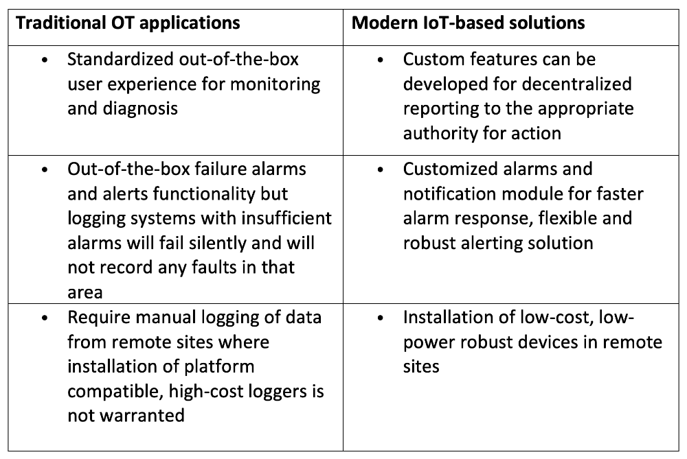 Let’s throw some light on the differences between application of traditional OT applications and modern IOT-based solutions.