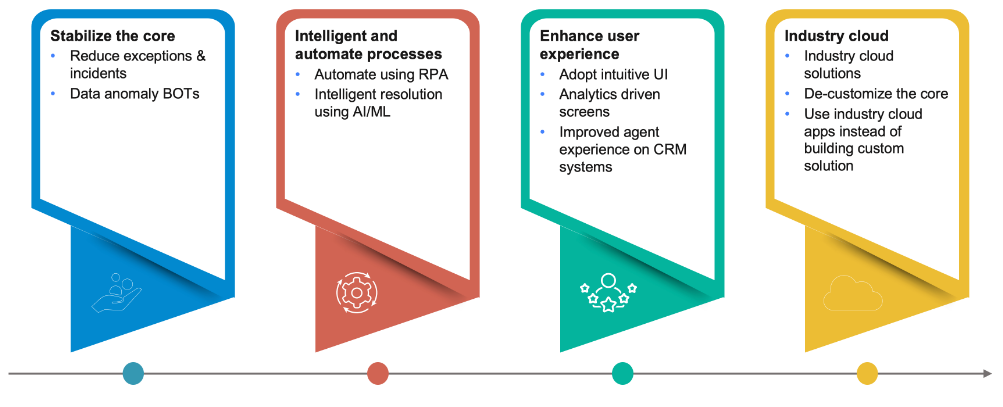 By using industry cloud solutions incrementally, core customer information systems are eventually migrated to the cloud. Cloud journey roadmaps and utility templates groomed through best practices can significantly mitigate program risks and accelerate the deployment.
