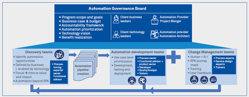 The Empirical & Comprehensive mode of discovery shall work in parallel and mandates a strong governance structure to monitor execution. The governance structure shall monitor the automation discovery, automation execution and change management in parallel and a lapse on any of these areas impact the overall scalability and pace of automation, ultimately impacting the ROI.