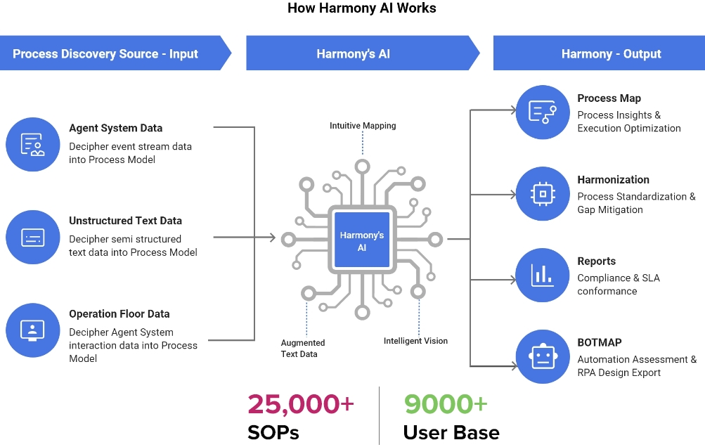 Businesses can leverage Harmony to embrace a new world of opportunity by optimizing the collaboration between people, processes and data. Using Harmony, companies can analyze business processes, understand workflows and optimize business operations using an AI-powered business platform.