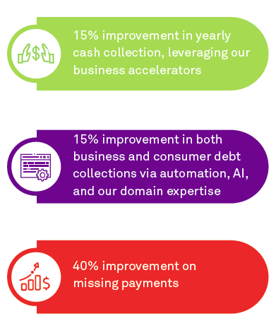 Using Wipro’s Automation solution, the client achieved improvement in cash collection and in tracking missed payments.