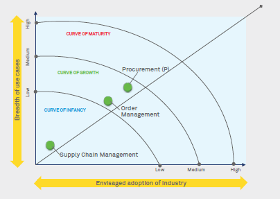Procurement & Order Management seem to be in the curve of growth marked by a breadth of use cases and a low adoption, while SCM could be currently categorized by the curve of infancy marked by a relatively lower breadth of use cases and lower envisaged industry adoption and the current state is only aimed for the subsequent state, i.e. the curve of maturity. This is only indicative of the immense growth potential that lies ahead for the SCM, Procurement & Order Management domains and sooner the adoption, the greater is the possibility of additional use cases emerging in the industry. The SCM, Procurement and Order Management areas are potential goldmines in terms of the opportunities they provide to derive benefits from disruptive technologies like RPA and AI, and organizations that proactively start investing in these areas will be better-positioned than their competitors in their transformation journey.