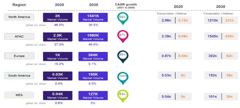 Figure 1: Regional estimates and trends of the uptake in autonomous vehicles