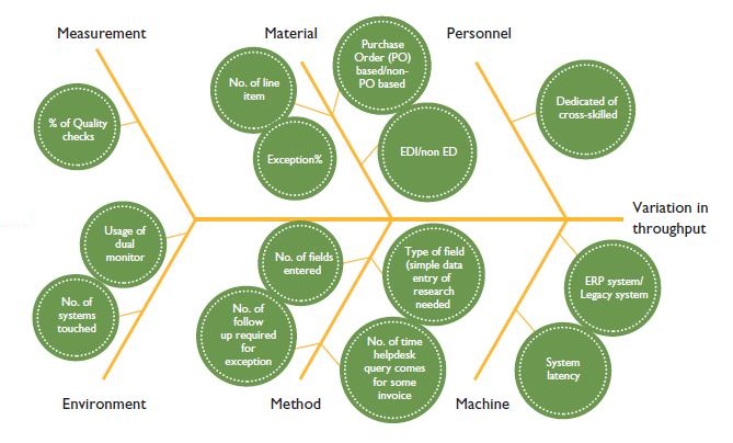 It is important to quantify and measure the extent of standardization across units. To align standardization with business and process objectives, it is measured against process and the business outcome or “Metrics”. Some of the commonly used metrics to measure standardization are throughput, quality, and turnaround time. It is important to identify the right outcome or metric and its appropriate operational definition. The identified metric is then measured across the units which could be different accounts or different market / products for same process. The variation in the value of metric across the units is a measure of (lack of) standardization. This provides a quantified output to track as improvement steps are approached with an objective of standardizing business processes. Sources of variations (drivers) are identified and these drivers are quantified which helps in identifying the gaps and corresponding counter measures to manage these drivers. The results of this can then be measured by reduction of variation in the value of metric.