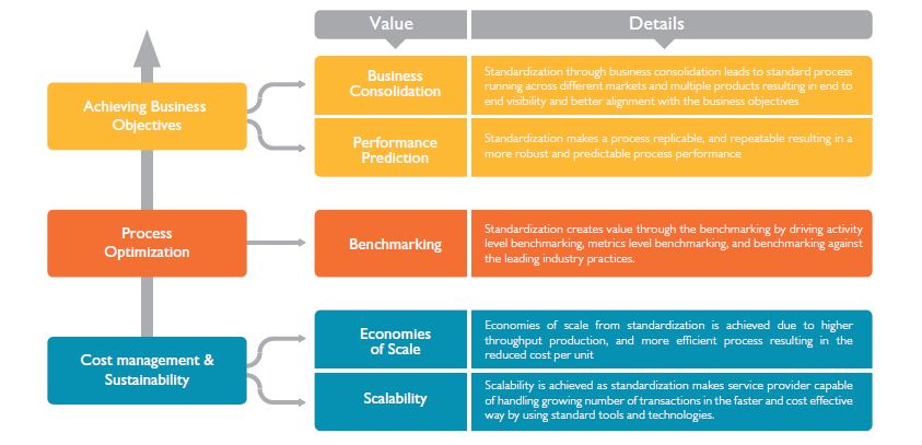 To meet cost constrains, drive efficiencies, and inculcate scalability, outsourcing clients and vendors are looking to standardize processes across markets and products. This paper discusses the need for standardization and the various approaches that can be followed by companies to achieve it.
