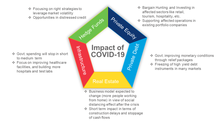 Other alternative investments like Infrastructure will be impacted as nations across the worlds will not be looking to build roads, ports and other core infrastructure immediately. Work-in-progress projects will be significantly impacted due to lack of funds and uncertainty of demand. With nations sealing their borders, the supply of critical project equipment and material will be impacted. On the flip side, governments around the world would be more focused on improving healthcare facilities by building more laboratories and hospitals. Most governments would have the onus of improving employment rate, which might in fact, lead to certain infrastructure spending as the situation normalizes.