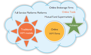 With the technological innovations in Cloud, Social Media, Analytics and Mobility, there has been a huge rush of tools, utilities and apps that are being pushed to the youth segment. There has been a sizeable number of personal finance online tools and utilities such as Mint.com, Wesabe, Geezeo, Jwaala, Goal Investor, Microgen etc., which could very well shrink the market share of online wealth management firms. The online WM firms will have to play their cards very carefully by isolating their business models from those of online tools.