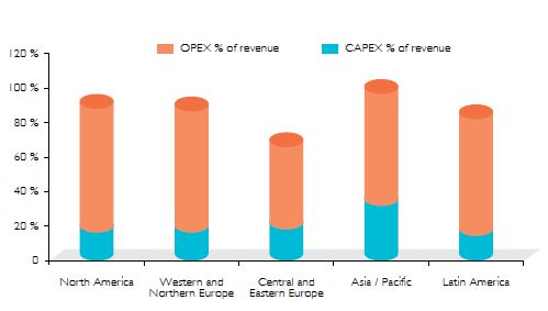 Figure 1: CSP’s expenditure by geography, Source: Wipro estimates based on Infonetics Research, 2011