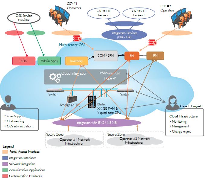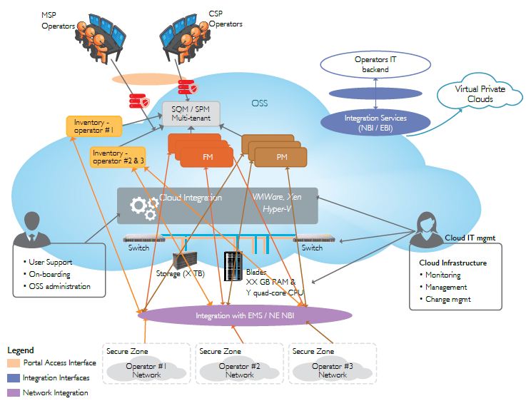 We propose a cloud hosted OSS model specifically tailored for MSPs. Moving to a cloud model (see figure 3) reduces both the CAPEX and OPEX for MSPs and provides much needed business and operational agility.