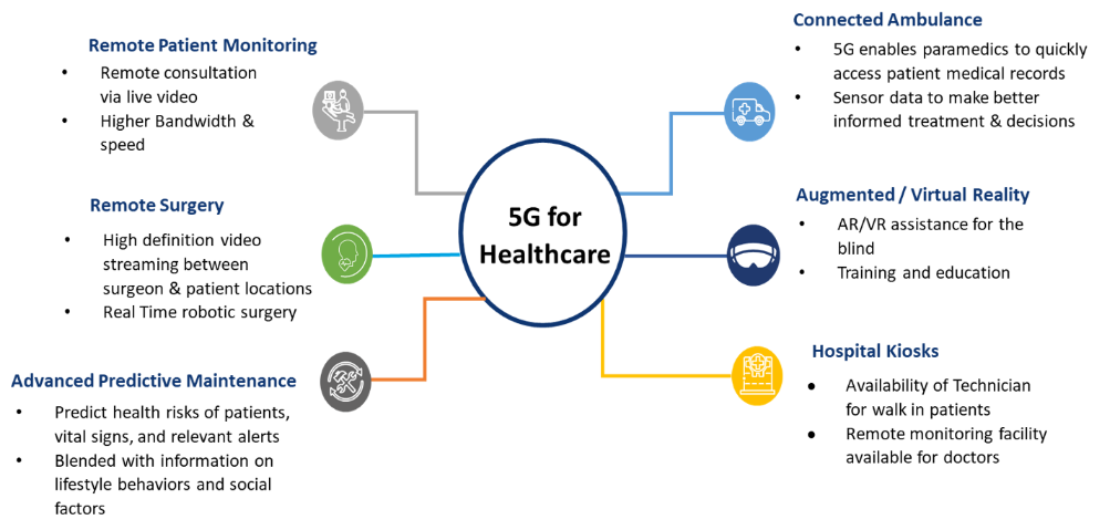 Capacity concerns arise when hospitals get overwhelmed due to a surge of patients. Specialty rooms and testing are required to treat the patient successfully. Telemedicine and IoMT can reduce bed demand by adding remote treatment and monitoring options. These services require higher bandwidth and speeds only available with 5G.