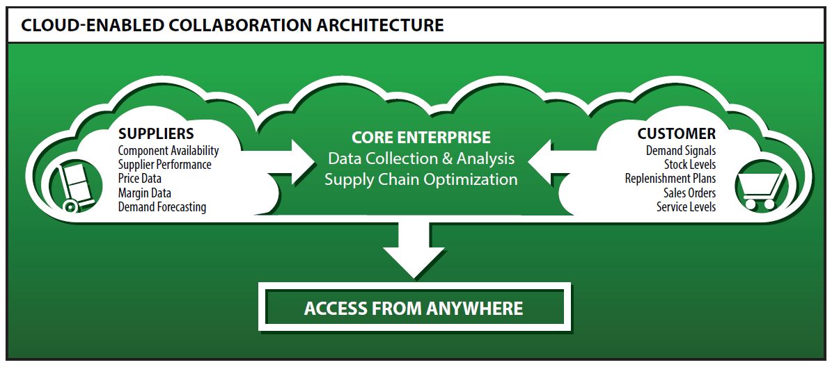 At the highest level of collaborative maturity we see organizations taking full advantage of today’s communications and analytics technologies by fully integrating suppliers and customers into the core supply chain through a common architecture, such as a portal via Cloud technologies or rolling out a standard interface to suppliers and customers.