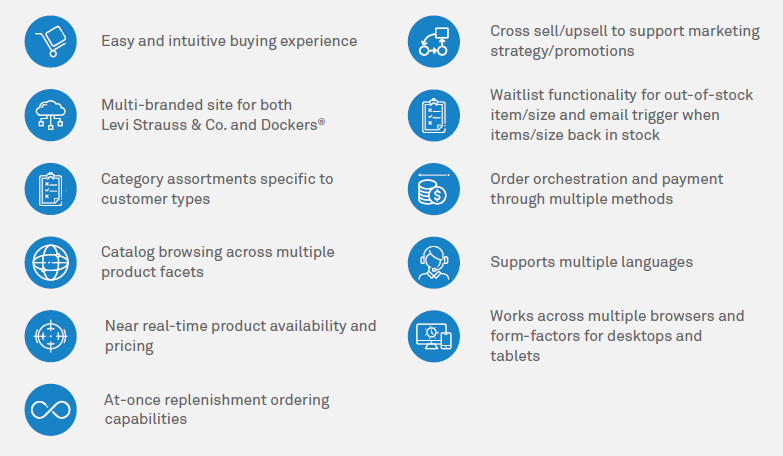 Levi Strauss & Co. embarked on a multi-phased journey of B2B digitalization. The intent was to create a B2B digital e-commerce platform that could scale globally with multiple brands, customer segments, languages and currencies, and integrate seamlessly with SAP ECC to provide customers easy access to up-to-date product order status, pricing and inventory information.