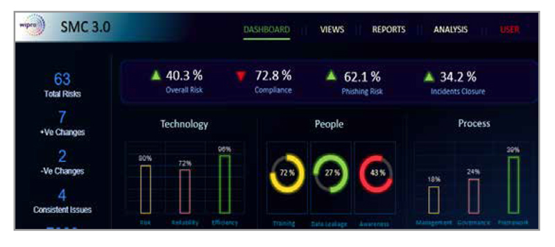 Wipro’s state-of-the-art Security Management Center (SMC), built on the principle of “Beat Before Beaten”, has an integrated approach combining Predictive, Preventive and Proactive activities based on automation and analytics, which ensures a 360-degree business-oriented view of security operations and thus,