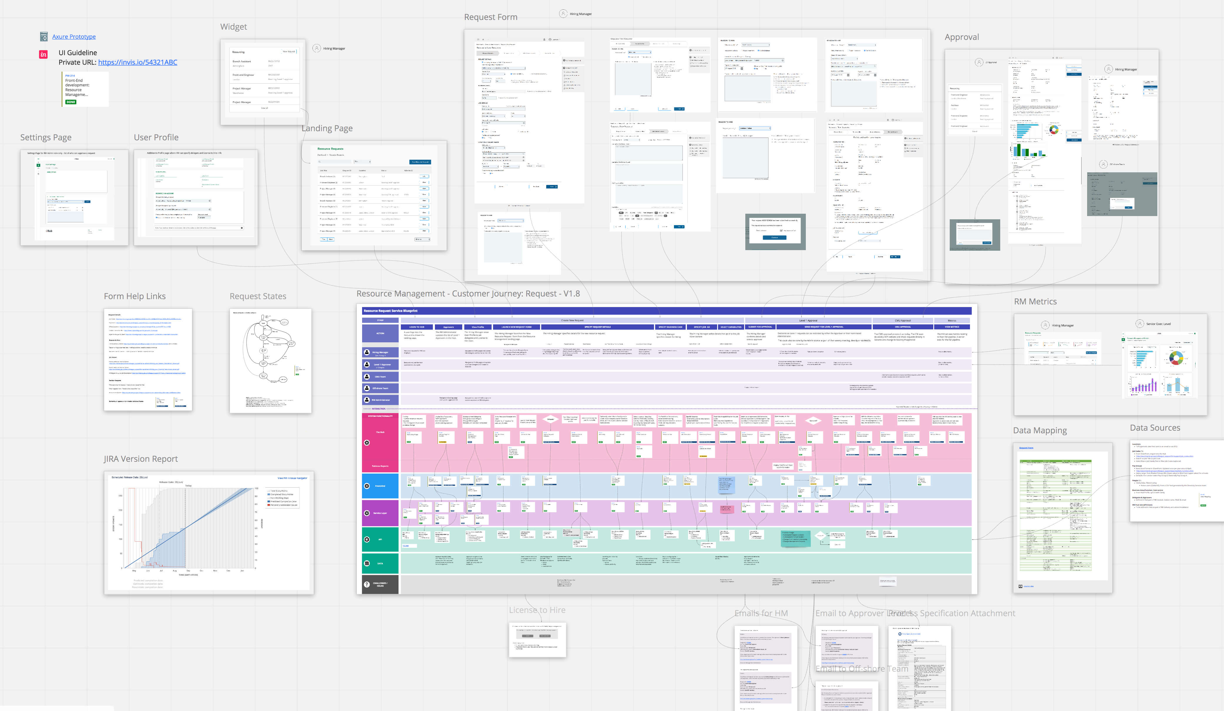 Created with an online whiteboarding tool called RealtimeBoard, this is a living ecosystem where we share everything we need to create the new service. We embed live Jira cards to add an Agile dimension to our shared workspace, allowing us to accurately plan and deliver the project.