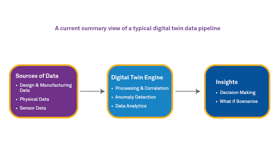 Before long, service engineers began asking how performance data could be exploited to provide better customer experiences and also optimize after-sales service agreements. If there was no real need to shut down and service a machine, you didn’t have to! This meant no more unplanned downtimes, which ultimately led to improved customer experience. Now, IoT provided manufacturers with avenues to boost bottom line profits. With so much data – more so, in near-real time – coming from the machines in the field, engineers could evaluate whether there were anomalies in the field data and recommend condition-based maintenance. All of this data was encapsulated in a digital twin of the asset. Design engineers began providing design insights on the asset to the service engineers, and companies augmented the digital representation of the asset with physics-based models, probabilistic techniques, machine learning, artificial intelligence, and immersive visualization. Both cloud-hosted and on-premise applications that provided insights to field engineers and designers alike gained in popularity. In the current IoT era, such digital twins found a unique role in any digital transformation journey.