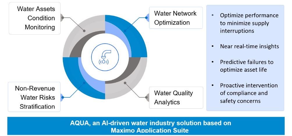 This partnership offers AQUA, a solution built on IBM’s Maximo Application Suite (MAS), bringing together purpose-built AI models for the water industry with IBM’s leading asset-management software. AQUA enables managing non-revenue water (NRW), addressing sustainable development goals (SDG), reducing operating costs and unplanned service interruptions while assisting clients with regulatory compliance and reporting responsibilities.