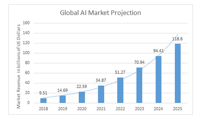 Businesses across sectors, including Automotive, Biosciences, Healthcare, and Finance among others, have been quick to adopt AI and integrate them as a vital part of their product roadmap, evidenced by the near exponential growth projections of the global AI market (Source: Statista).