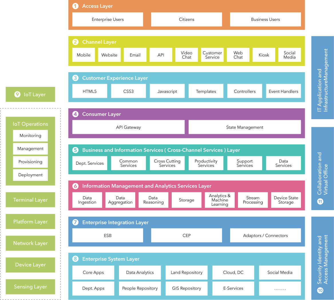 The reference architecture should be vendor-neutral and not specific to any set of technologies. Developing a single architecture that covers all the requirements of the connected ecosystem is a big challenge. The reference architecture covers multiple aspects of the enterprise-wide backend layers, including domain-specific applications and decision support systems that consume data from the IoT devices.