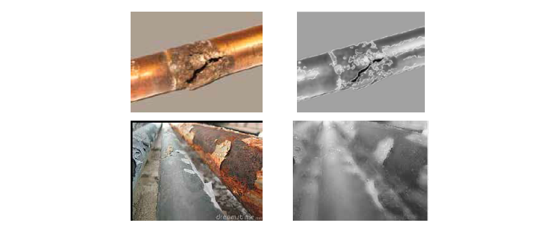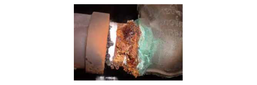 Corrosion is also one of the leading causes of failures in pipelines. A pipeline may suffer from internal and/or external corrosion. Estimated one-third of corrosion-related failures are caused by external sources while the remaining is caused by internal sources. Corrosion can eat away at the welds and may lead to Figure 7: Pipeline corrosion damage small holes forming on the surfaces causing often undetected leaks Corrosion can also be caused by the product being transported via the pipeline or due to variations in the external environment (Figure 8). External corrosion can be caused by damaged and worn-off protective coatings, manufacturing & welding defects, stray current, proximity to corrosive environment such as sewage water, animal waste, fertilizers and other chemicals etc. Internal corrosion causes include presence of chloride, carbon dioxide, hydrogen sulfide, oxygen, and microbiological activity that produces corrosive conditions. Different forms of corrosion are sweet (CO2) corrosion, sour (H2S) corrosion, oxygen corrosion, galvanic corrosion (Figure 7), pitting & crevice corrosion, erosion corrosion and stress corrosion cracking (SCC).