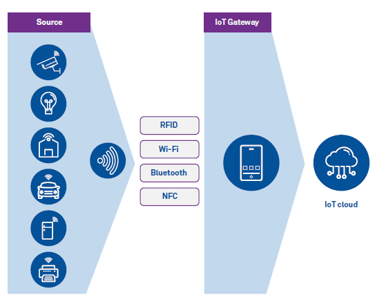 A smartphone can perform all these tasks and act as a universal gateway so that it will be easy to plug-in any IoT sensors to connect to the internet. The diagram below has this view