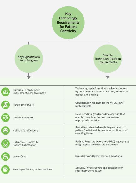 Technology today is making patient centric care programs possible by extending the reach of care organizations to larger society. It is multiplying the effectiveness of a limited number of skilled professionals, driving affordability and improving decision-support through evidence-based practices (see table: Key Technology Requirements for Patient Centricity for details on patient / care giver expectations and the supporting technologies).